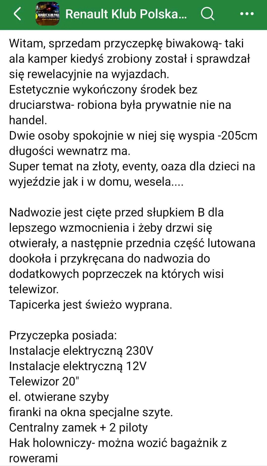 Brzmi sensownie, ale w każdej zachęcającej propozycji kryje się haczyk. Tym razem owym haczykiem jest brak rejestracji przyczepy, co spadnie na nowego właściciela. Brzmi to nieco zagadkowo w obliczu wspomnianych wycieczek zagranicznych, ale ja się tam nie znam.