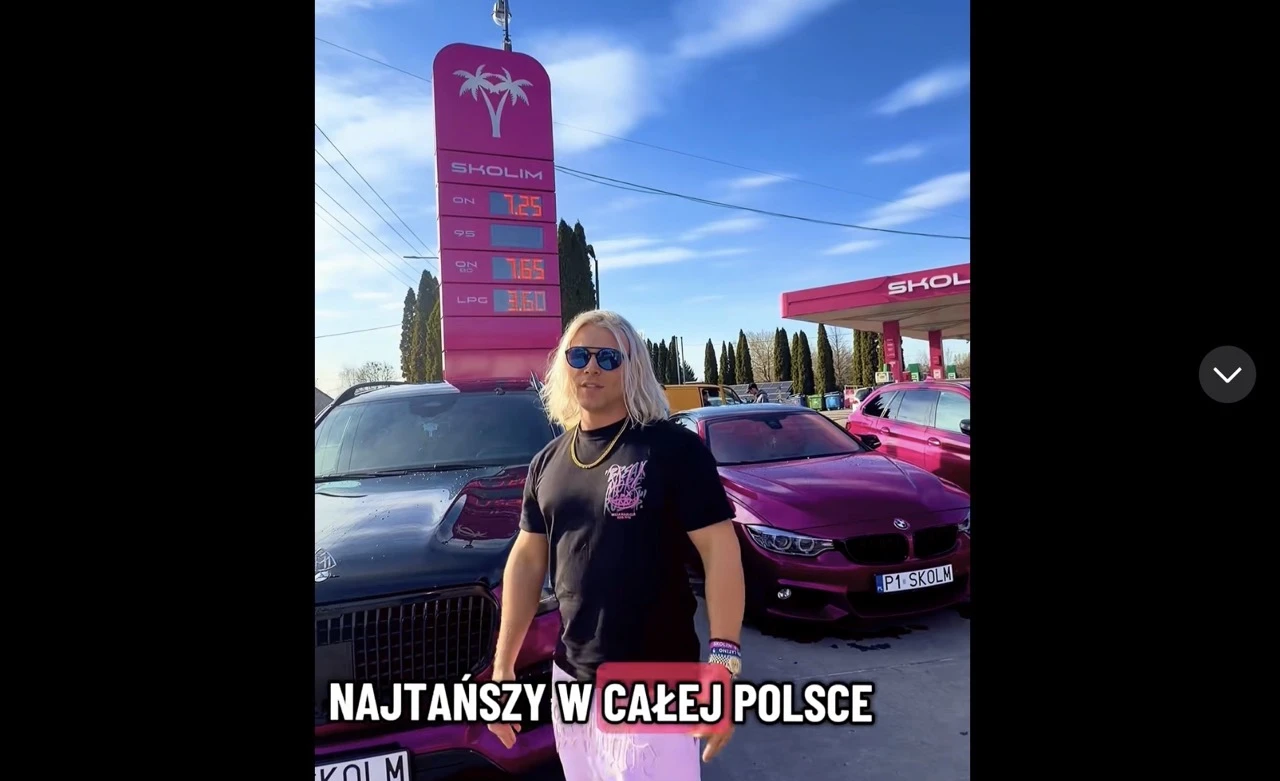 Skolim mówi, że u niego jest najtaniej, bo ludzie jadą na Święta Wielkanocne, więc muszą tanio zatankować. Czy tak jest? Faktycznie te ceny należą do jednych z niższych w kraju, podobne są tylko na stacjach Auchan. Gdzie tkwi sekret Skolima? Obniżył do minimum swoją marżę. Wbrew temu, co opowiadają wam właściciele stacji, którzy twierdzą, że od 20 lat dokładają do interesu, marża na paliwie jest bliżej 10 proc. niż 1 proc. Na każdym litrze, więc wcale nie jest tak, że na paliwie nie zarabiają, a wszystko kręci się wyłącznie dzięki zakupom w sklepie zlokalizowanym na stacji. Skolim postawił na rozpoznawalność - stację odwiedza wielu fanów, bo tam mogą nie tylko zatankować, ale również tanio zjeść i kupić fanty z kolekcji gwiazdy - perfumy, koszulki itd. Sam o tym zresztą mówi: