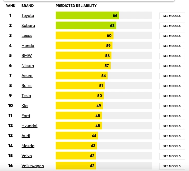 Niedawno pojawił się ranking niezawodności marek – niestety amerykański, bo od Consumer Reports, ale to nic nie szkodzi, ponieważ i tak można się z niego bardzo wiele dowiedzieć. O ile górne miejsca zajmują stale ci sami producenci, tj. Toyota, Lexus, Subaru czy Honda, o tyle ciekawie przedstawia się sytuacja z Teslą.