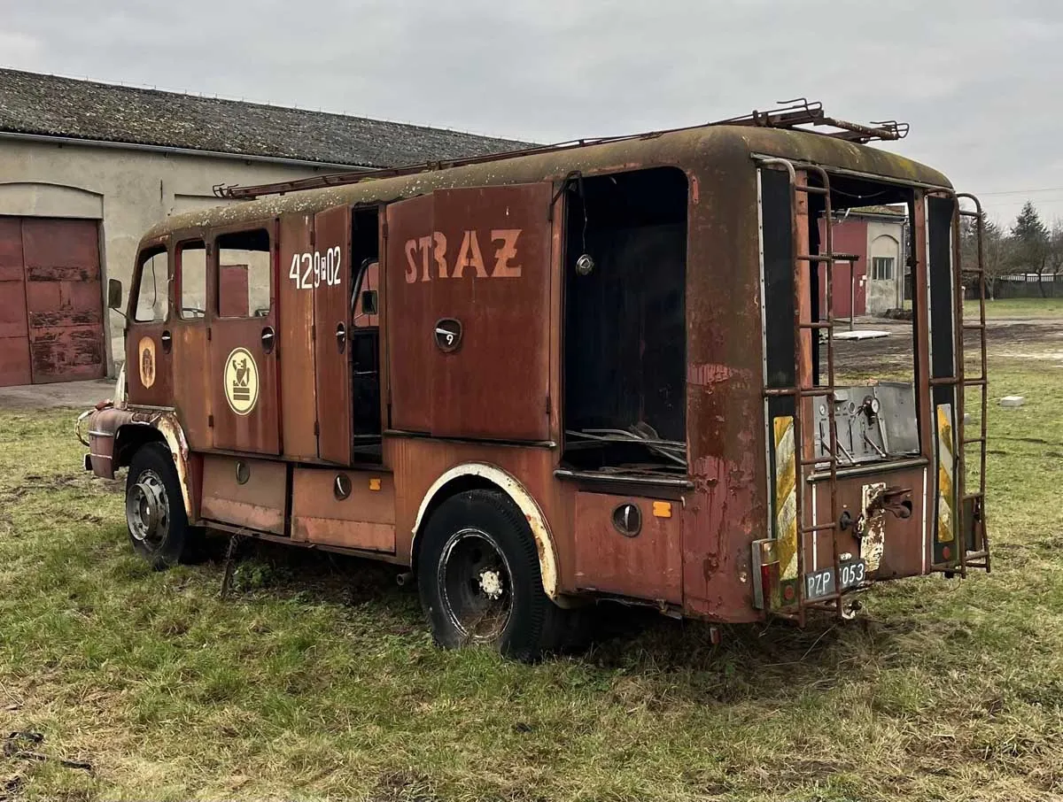 Jak widać, flota jednostek Ochotniczej Straży Pożarnej skrywa jeszcze wiele ciekawych pojazdów. Wóz pełnił prawilną służbę na polskiej ziemi, albowiem cały czas ma na sobie tablice rejestracyjne dawnego województwa poznańskiego. Dokładniej, blachy pochodzą z Gniezna i zostały wydane najprawdopodobniej w drugiej połowie lat 80. Jeżeli poszlaki zgadzają się z prawdą historyczną, sprzęt był sprawny jeszcze na początku lat 90.