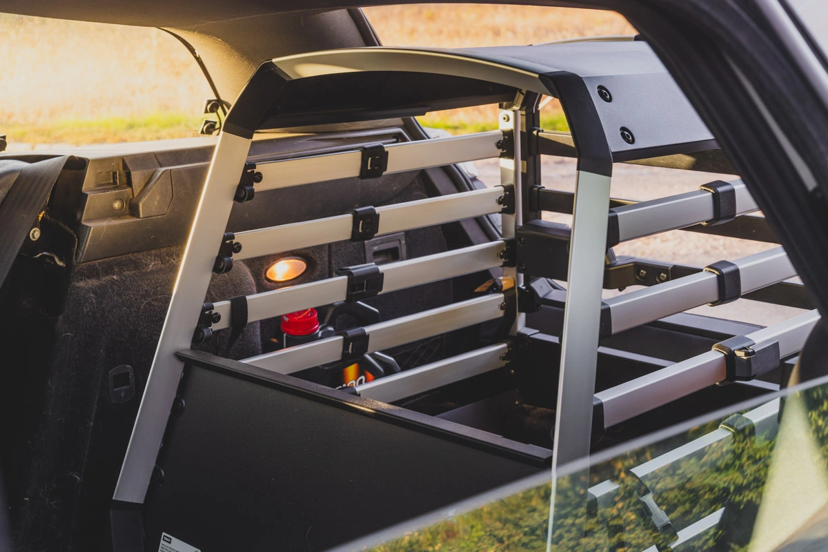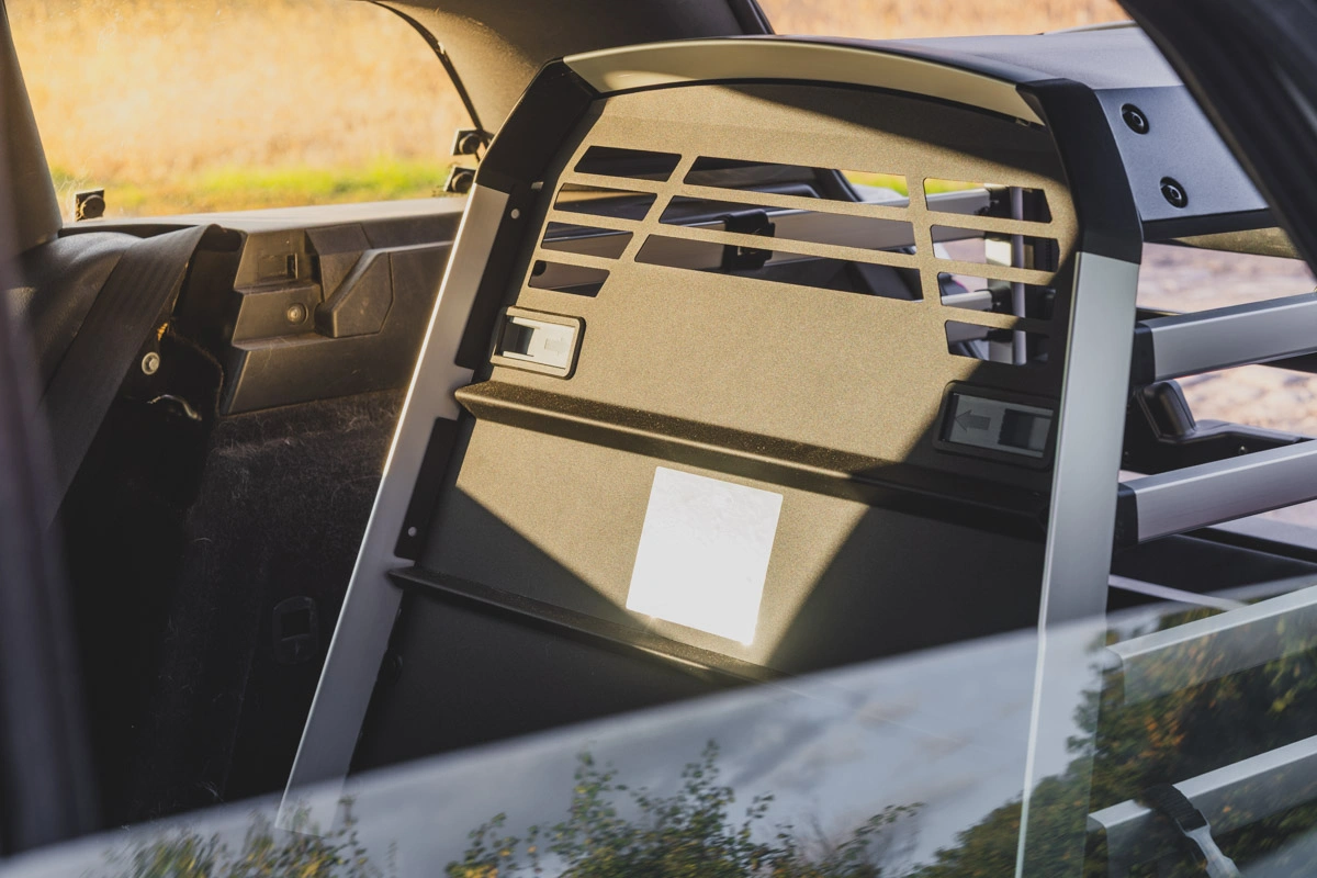 W razie uderzenia w bagażnik musimy psa wyciągnąć od wnętrza auta. Na co dzień jest tam metalowa ścianka, ale wciśnięcie dwóch zabezpieczeń pozwala ją wyjąć i wtedy dostajemy coś takiego: