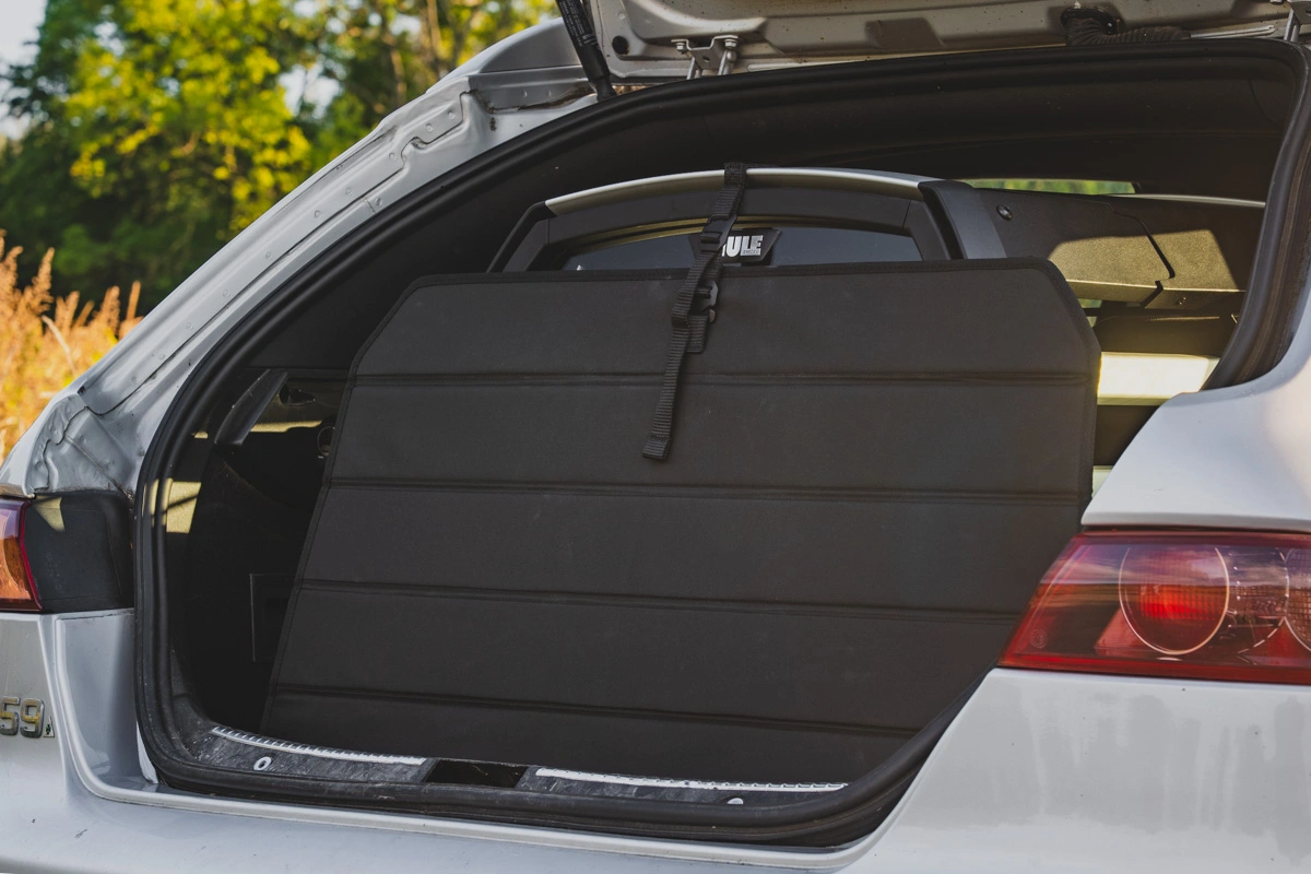 Klatka, która do mnie dotarła, była w rozmiarze L compact i początkowo postanowiłem postępować zgodnie z instrukcją. Czyli złożyć ją na zewnątrz (banalnie proste), a potem włożyć do bagażnika, ustawić długość (regulacja w zakresie 87-93 cm), poskręcać do końca i ruszyć w drogę.
