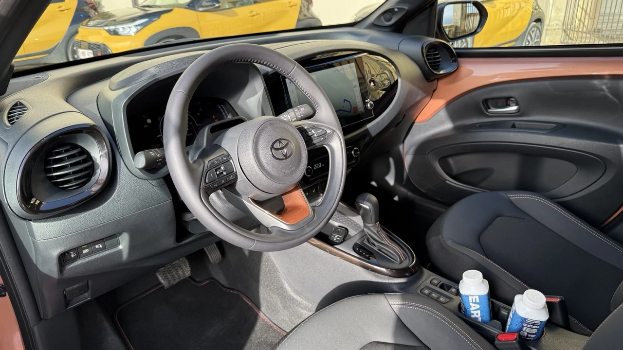 Skoro wspomniałem już tu litery „GTI”, czas na ich odpowiednik z gamy Toyoty, czyli „GR”. Spokojnie: w przypadku Aygo nie ma mowy o mocy jak z GR Yarisa ani o napędzie na cztery koła (to by było coś…). To jednak coś więcej niż pakiet stylistyczny, bo takie Aygo ma przy okazji lekko zmodyfikowane zawieszenie i bardziej bezpośredni układ kierowniczy. Amortyzatory zestrojono sztywniej, zastosowano też grubsze stabilizatory, by auto mniej się przechylało. Efekt? Aygo X GR Sport faktycznie jest bardziej żywiołowe w reakcjach. Nie jestem pewien, dla kogo jest taka wersja: fani prawdziwych hot hatchy raczej nie kochają hybryd z e-CVT, a poszukiwacze niskiego spalania i niskiej ceny uciekną na widok cennika. Co nie zmienia faktu, że jeździ najlepiej z całej gamy i wysiadłem z niej z szerokim uśmiechem na ustach. Dawno nie jeździłem dynamicznym, angażującym i naprawdę małym autem. Miła odtrutka od dzisiejszej ociężałej motoryzacji.