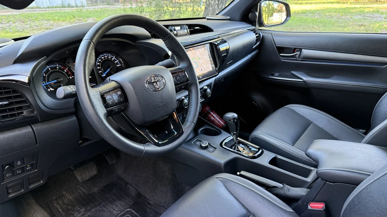 Kokpit jest funkcjonalny (klimatyzacja ma osobny panel, jest tu naprawdę dużo wielkich przycisków fizycznych) i tak prosty w obsłudze, jak to tylko możliwe. Doceniam, a inni kierowcy Hiluxa na pewno doceniają jeszcze bardziej. Można obsługiwać w grubych rękawicach, albo wszystko trochę ubrudzić i potem łatwo umyć. Oby w następnej generacji nie zastąpiono przycisków ekranami. One dobrze wyglądają tylko czyściutkie i nie nadają się dla ludzi pracy. Nie o to chodzi w pickupie.