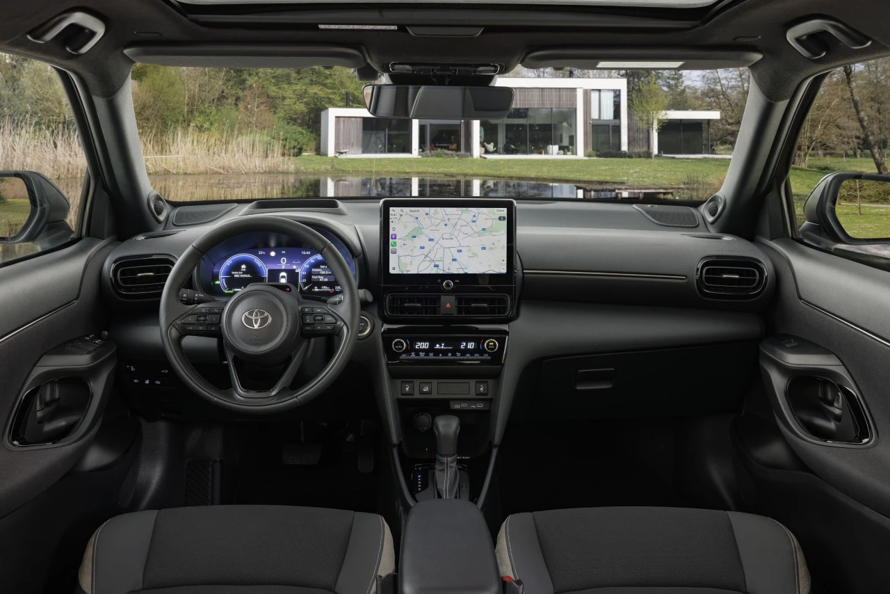 Odświeżony Yariss Cross ma też kilka nowości we wnętrzu, jednak nie ma co ukrywać, że z zewnątrz widać ich zdecydowanie więcej. Pojawiło się platynowe wykończenie na drzwiach, a wersja wyposażenia Style zyskała fotele z wyprofilowanym podparciem bocznym i trójkolorowym przeszyciem, które wcześniej były dostępne w wyższym wariancie Executive.