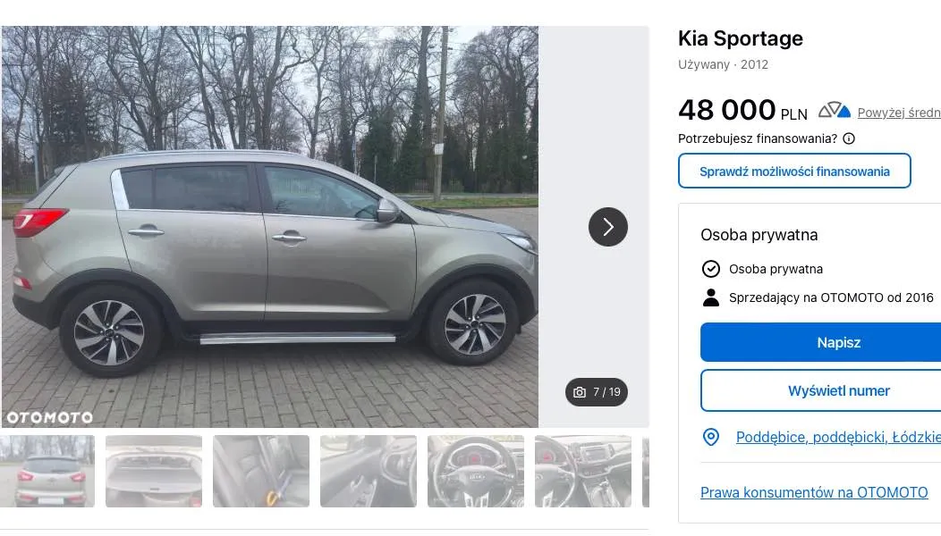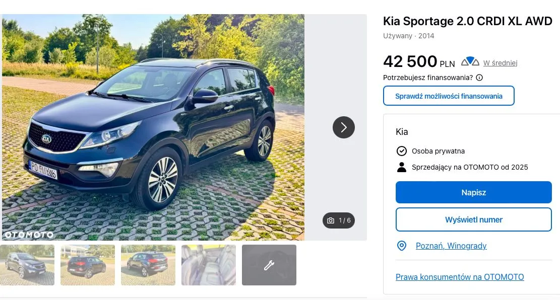 W przypadku Sportage tak dużo jest samochodów z polskiego salonu, że trudno mi znaleźć realny powód zainteresowania egzemplarzami z Niemiec. Zwłaszcza w tej cenie i z najsłabszym silnikiem. O ile w przypadku marek typu Audi czy BMW z importu pochodzi często ponad 80 proc. aut, o tyle w przypadku Sportage co drugie auto opuściło polski punkt sprzedaży. To oznacza, że wiele z nich można sprawdzić od razu za darmo w serwisie HistoriaPojazdu.gov.pl - przynajmniej jeśli chodzi o przebieg.