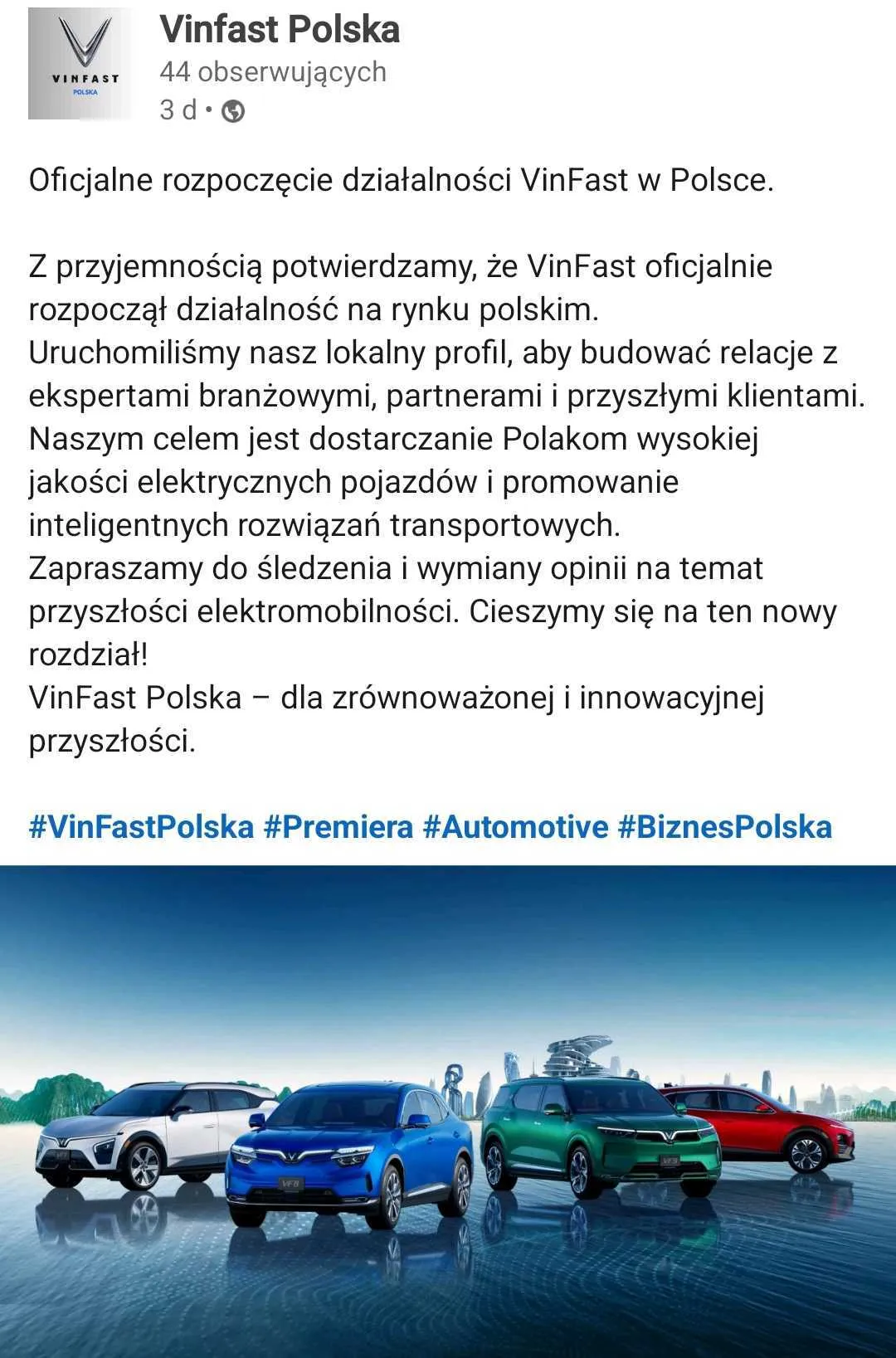 VinFast rozpoczyna swoją polską karierę w bardzo nowoczesny sposób - na razie działają tylko w mediach społecznościowych. Jest bardziej korporacyjny Linkedin...