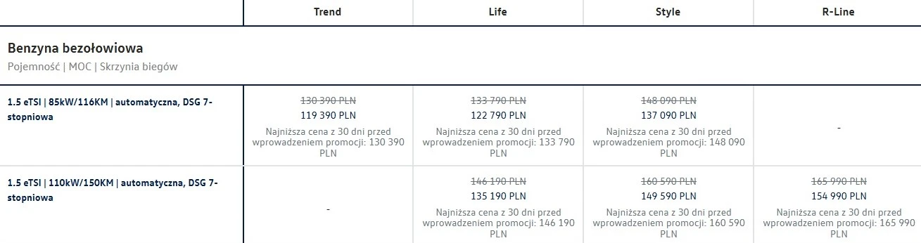 - Trend – 119 390 zł (zamiast 130 390 zł),