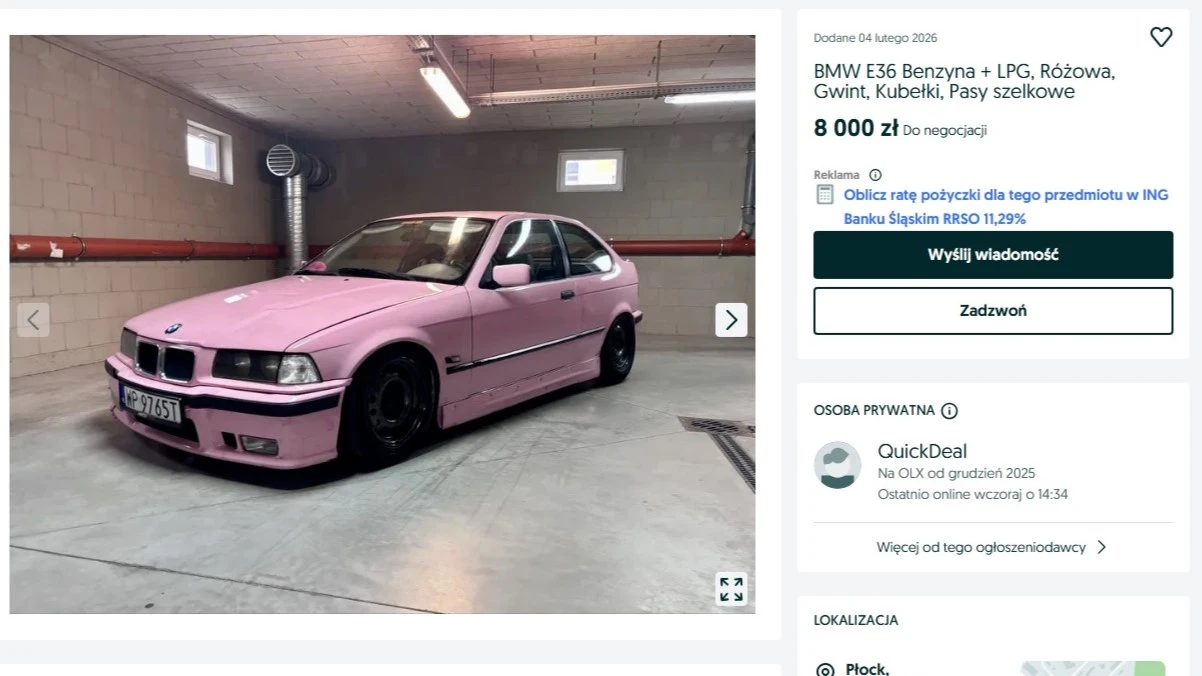 Nikt nie lubi kłótni – zwłaszcza w związku, dlatego najlepiej zawsze szczerze ze sobą rozmawiajcie, by nie dusić w sobie emocji. Jeśli jednak czujecie, że chcecie je jakoś wyładować, kultowe BMW serii 3 E36 Compact sprawdzi się doskonale. Za 8000 zł dostaniecie egzemplarz z kubełkowymi fotelami, szelkowymi pasami, sportową kierownicą i short shifterem. Silnik 1.6 działa z LPG, więc będzie w miarę oszczędnie. Radzę jednak uważać, bo w ogłoszeniu wspomniano też o przelocie, więc może być głośno.