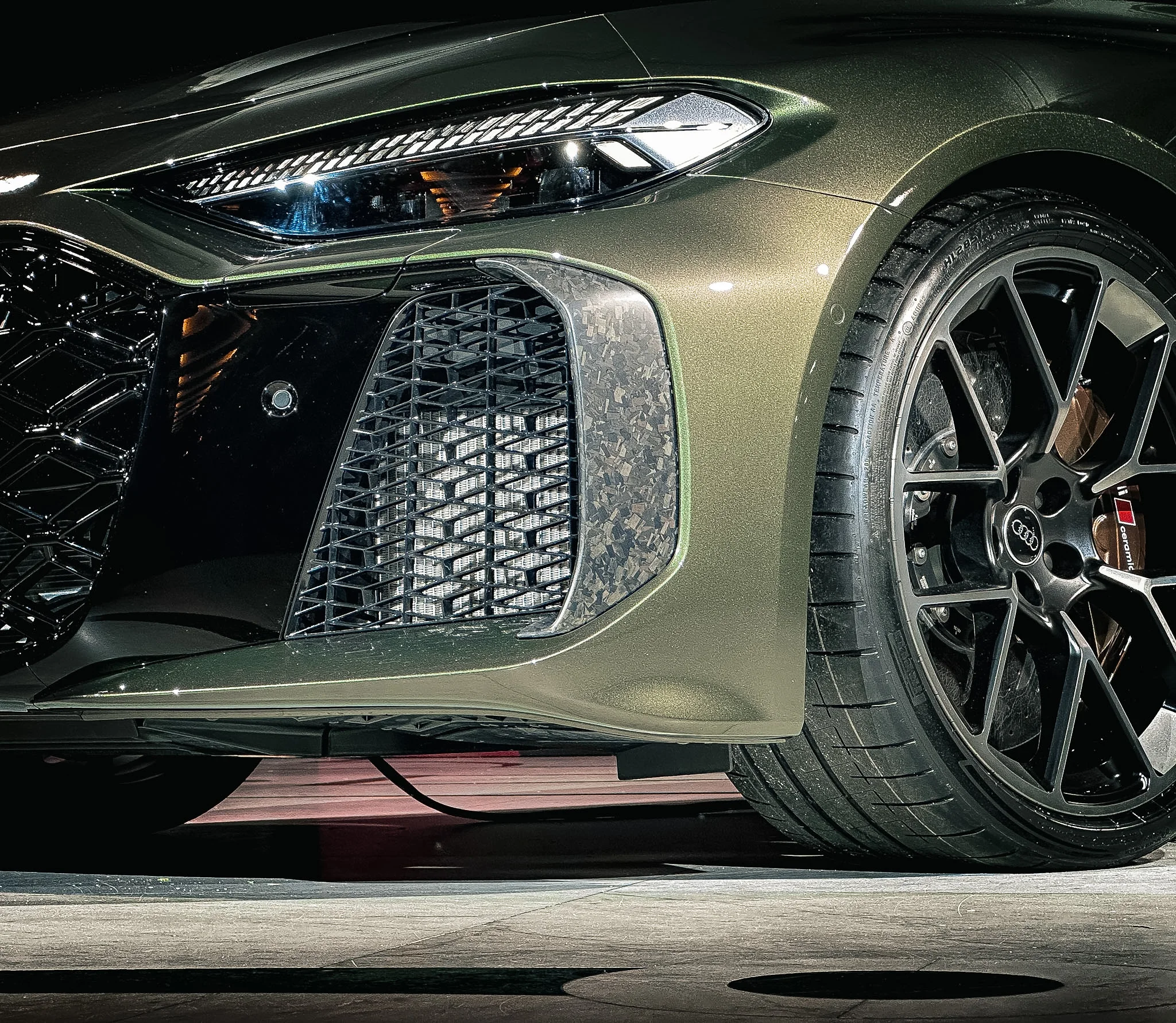 Ale rozumiem też, że to może być pierwszy wybór klientów, że taki element rozpraszający wprowadza się specjalnie. O tym się będzie mówić, będzie to wyróżniać właścicieli na drodze. Oni nie będą mieć tylko kolejnego szybkiego Audi, oni będą mieć to nowe RS5, z tym nowym kolorem i karbonem.
