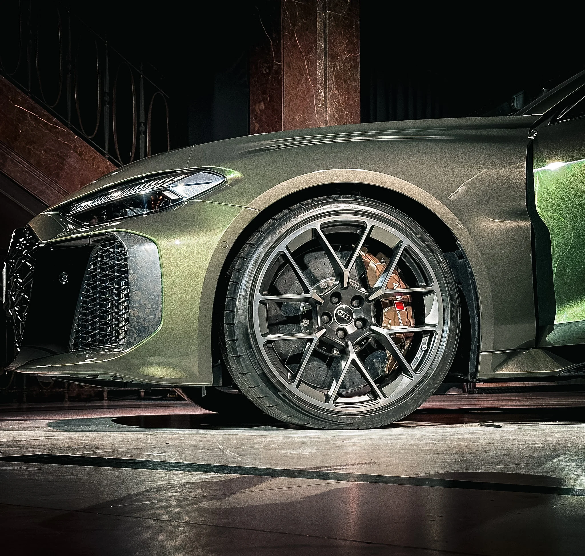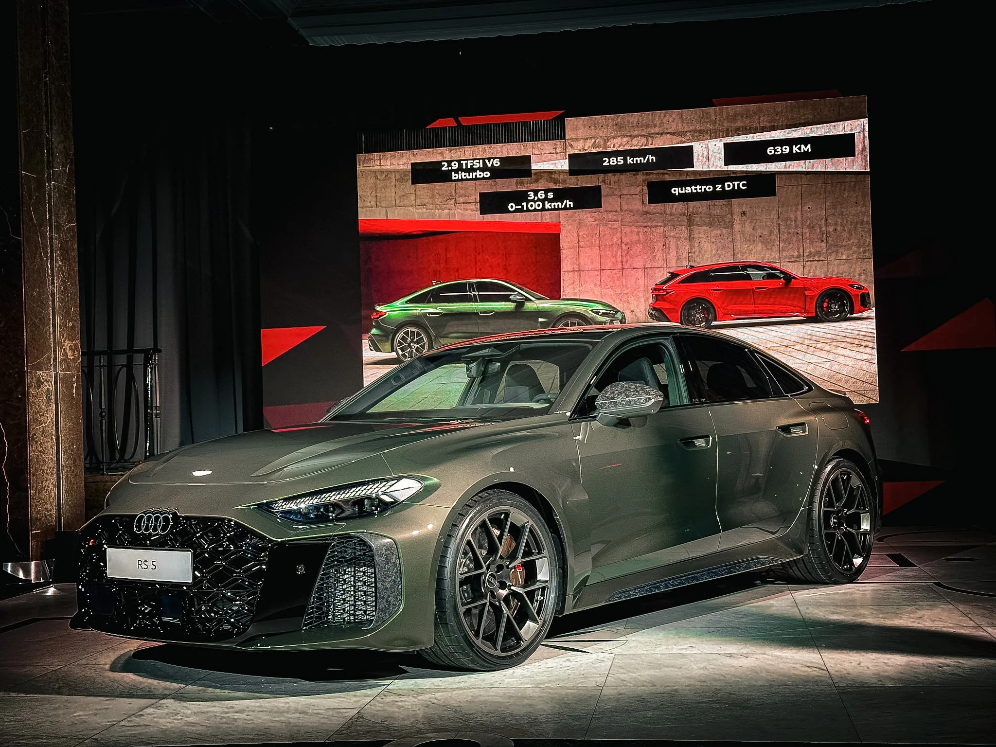 Nowe Audi RS5 trudno jest przebić pod względem mocy. Nawet inne auta w gamie producenta mają z tym problem. Nie mogłem jeszcze jej doświadczyć, ale za to mogłem podziwiać zielony kolor i wstawki z włókna węglowego. Jeśli czerwone samochody są szybkie, to co robią samochody zielone?