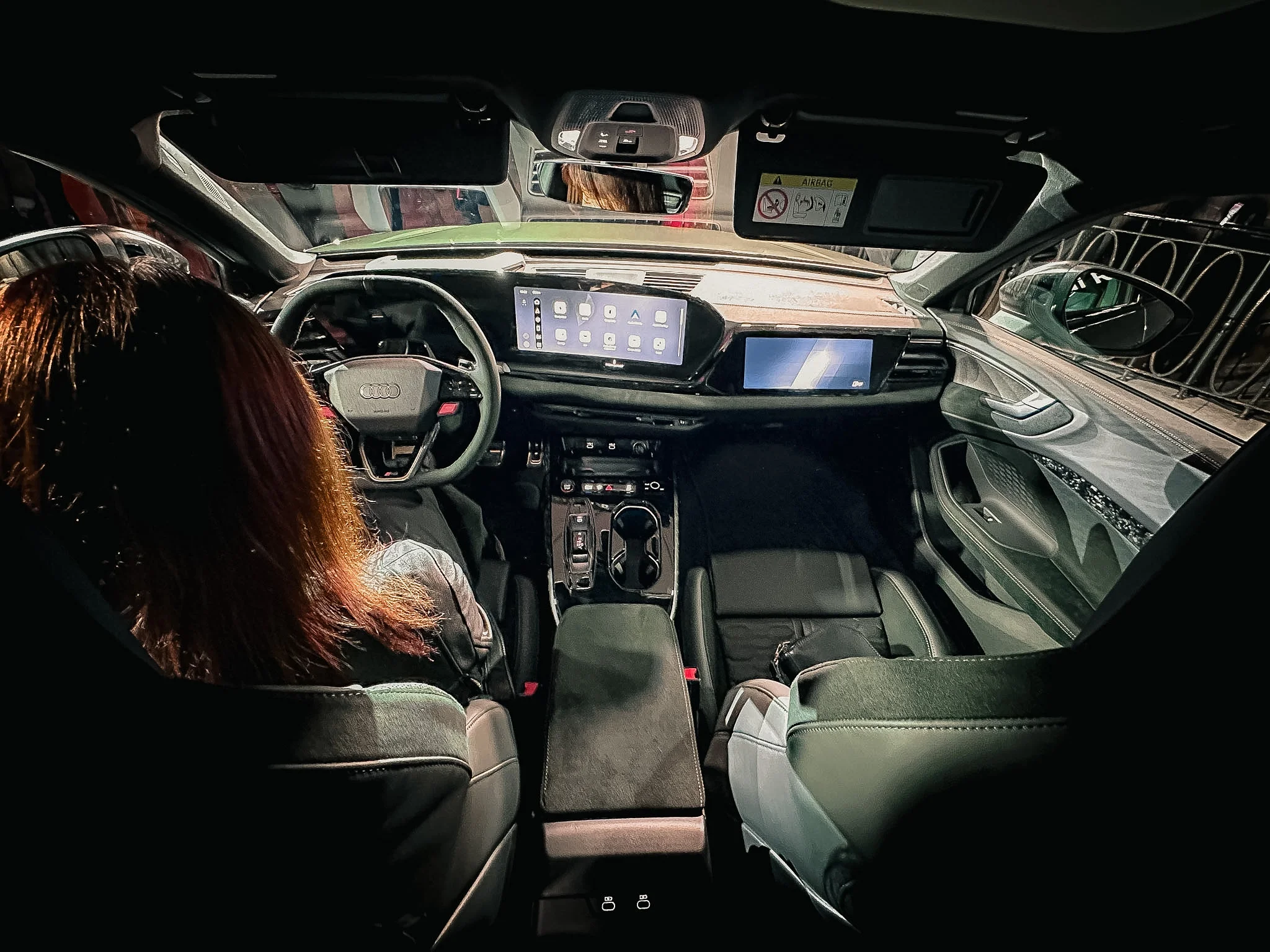 Ekran jest znany z innych modeli, ale wyróżnia go możliwość wyświetlenia przeciążeń generowanych podczas jazdy na torze. Można też zapamiętać wszystkie parametry, w trakcie pokonywania okrążeń na torze. Co prowadzi do pytania, czym się to Audi odpycha?