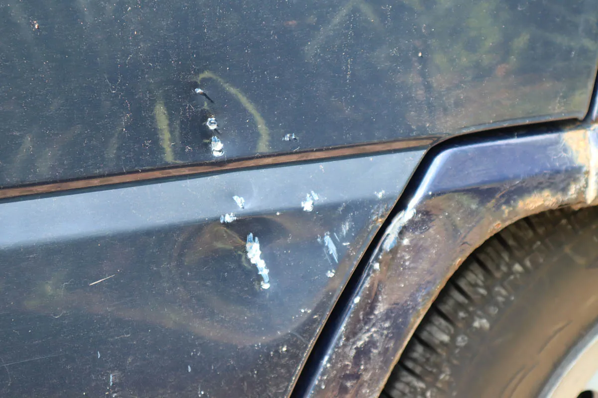 Dopiero kolejnego dnia mogłem ocenić pełną skalę zniszczeń. Cały lewy bok auta był pognieciony i porysowany. Wcześniej została wybita szyba w przednich drzwiach, a że stało się to przed wywrotką, otwór na szkło zacisnął się do zera. Z wnętrza złoczyńcy otworzyli maskę i pobrali spod niej akumulator, a później wyrwali z mocowań oparcie tylnej kanapy, gdzie znajdowała się walizka z narzędziami. Gwoździem programu był przecięty układ wydechowy, ponieważ plat principal był katalizator - stąd przewrócenie samochodu na bok. Nie liczę pomniejszych uszkodzeń powstałych prawdopodobnie dla rozrywki, jak urwana antena czy wycieraczka tylnej szyby.