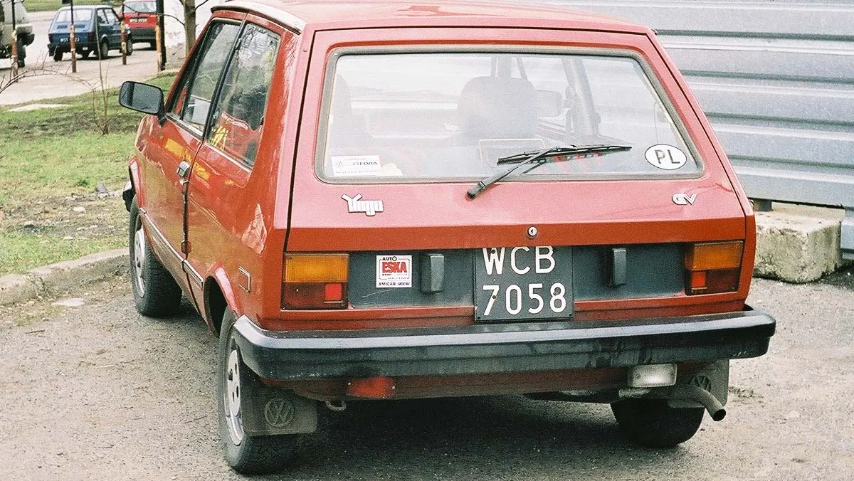 Ale nie takie egzotyczne, jak pomyśleliście w pierwszym odruchu. W latach 2000. ktoś sfotografował we Wrocławiu amerykańskie Yugo GV, które ktoś inny w latach 90. przytelepał do Polski, zapewne w ramach mienia przesiedleńczego.