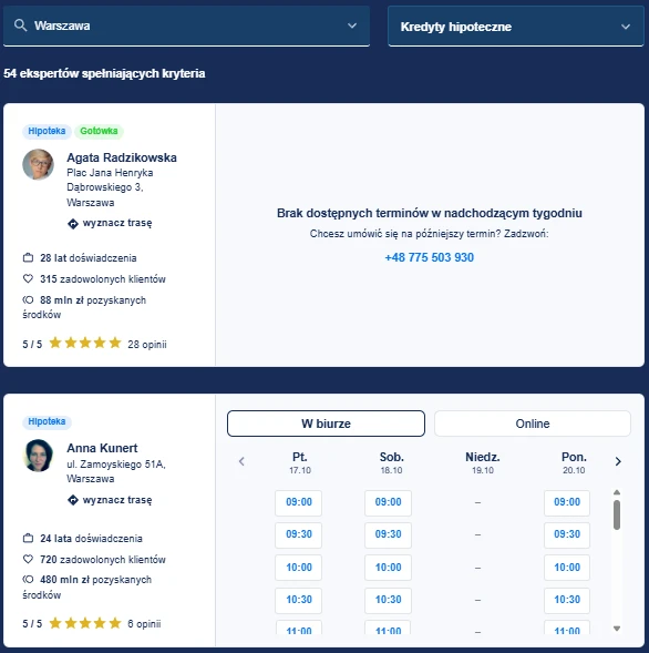 Eksperci kredytowi z Warszawy. Źródło: https://www.lendi.pl/eksperci-finansowi/warszawa/kredyty-hipoteczne