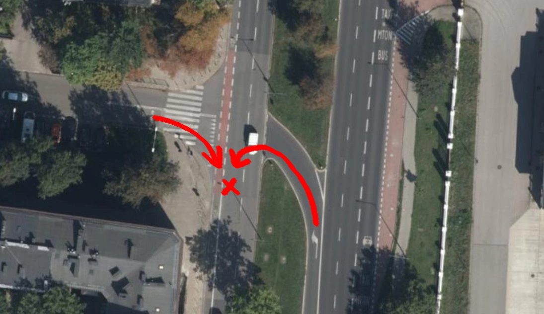 Ok, w tym przypadku nie ma drogi po przeciwnej stronie, więc teoretycznie nikt nie mógł się stamtąd pojawić, niemniej w momencie jej obecności mogło być właśnie dokładnie tak, jak opisałem powyżej. Poza tym, każdy może być w danym miejscu po raz pierwszy i po prostu nie widzieć dokładnie zza oczekującego auta, czy za nim znajduje się inna droga.