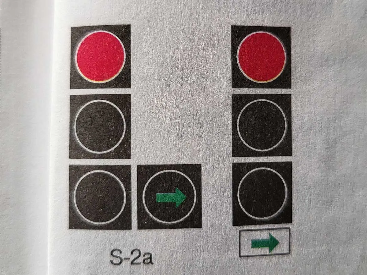 Wcześniej, oprócz sygnalizatora S-2, obowiązywały również metalowe tabliczki z zieloną strzałką