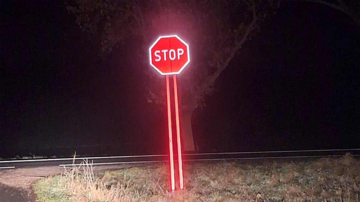 Faktycznie, w ciemnościach dodatkowo “oświetlony” znak drogowy widoczny jest o wiele lepiej. Dostrzegalny jest z większej odległości, łatwiej wyłowić go również w tłumie mniej istotnych znaków.